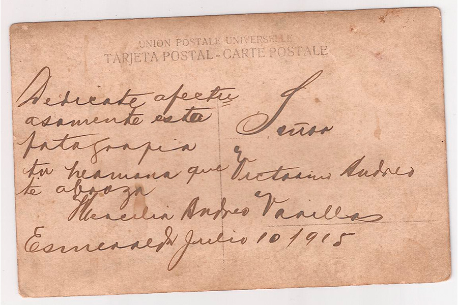 4.2 Ercilia Andreo de Braida a sus 16 años 1917 reverso tarjeta